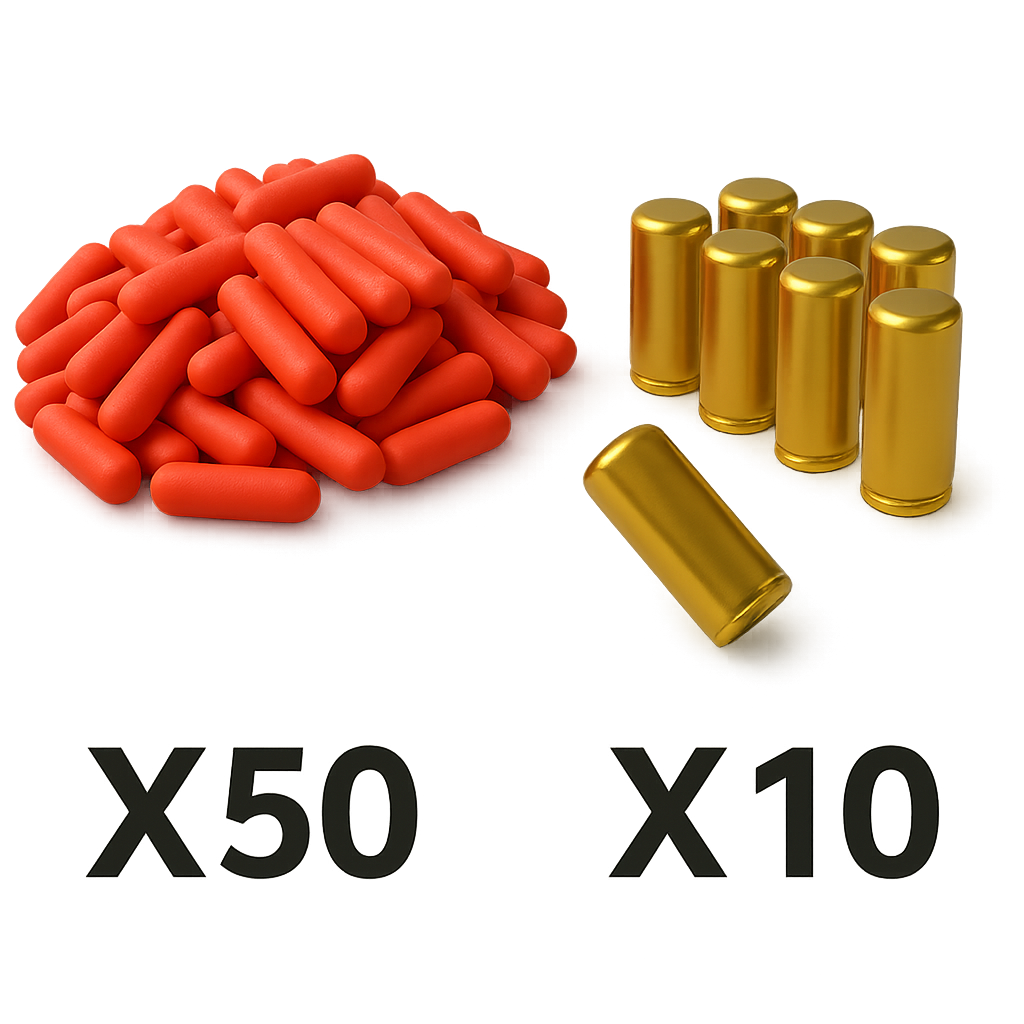 Most Miniblaster models include a set of darts and casings. If they are visible in the product image, they’re part of the package.