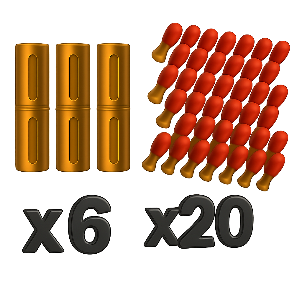 Most Miniblaster models include a set of darts and casings. If they are visible in the product image, they’re part of the package.