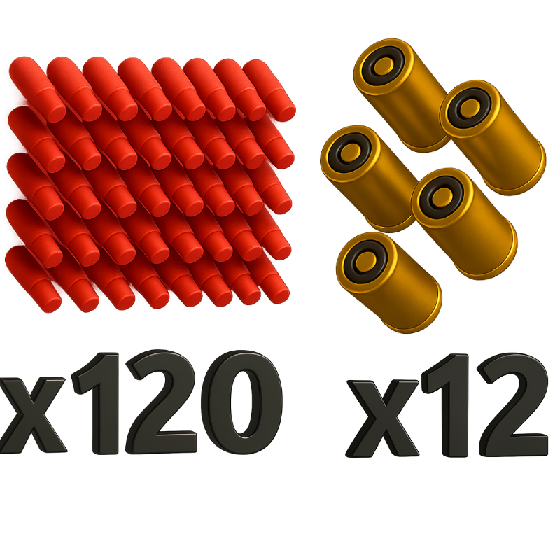 Most Miniblaster models include a set of darts and casings. If they are visible in the product image, they’re part of the package.